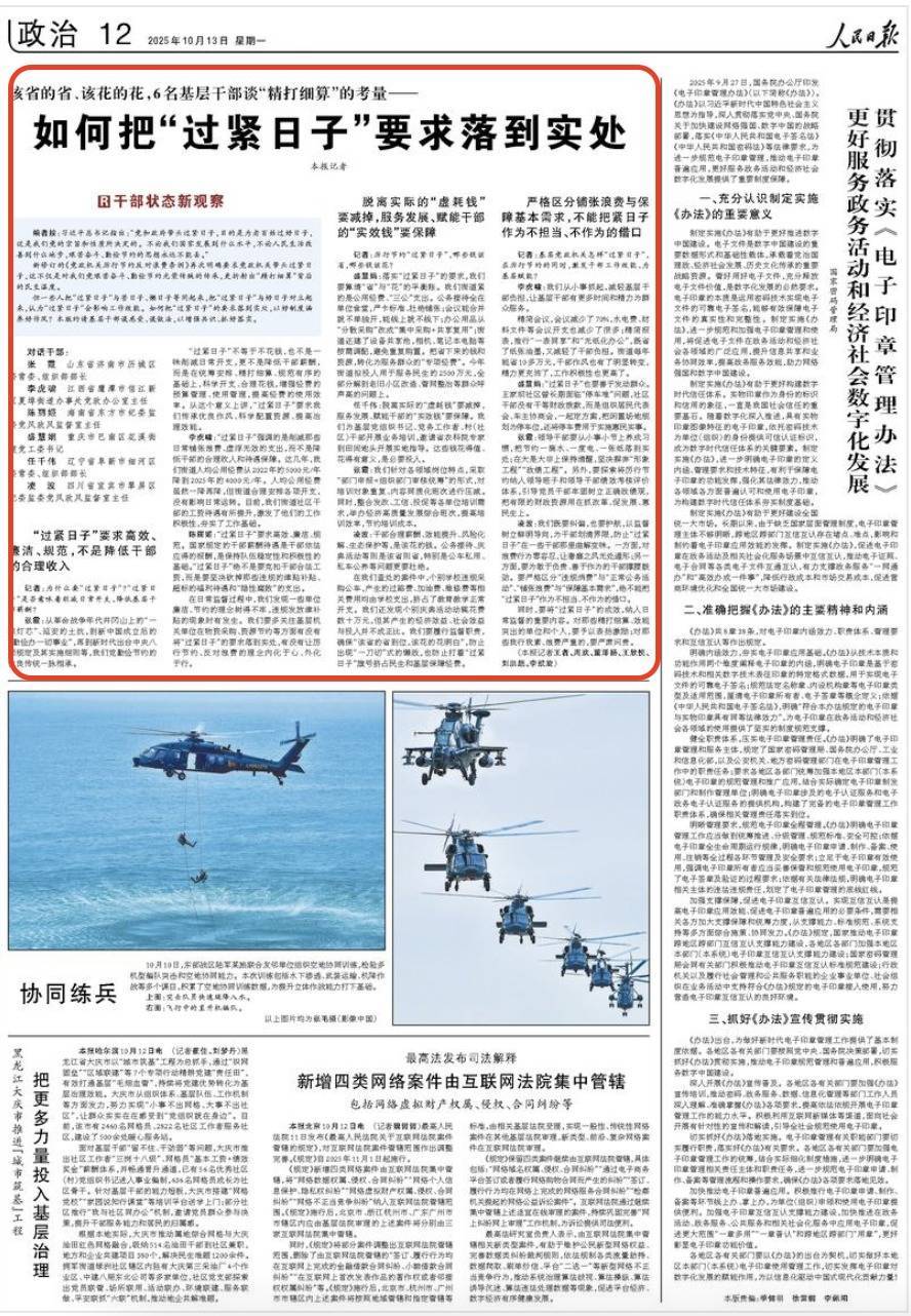 10月13日,《人民日报》对话6名基层干部,谈“精打细算”的考量。